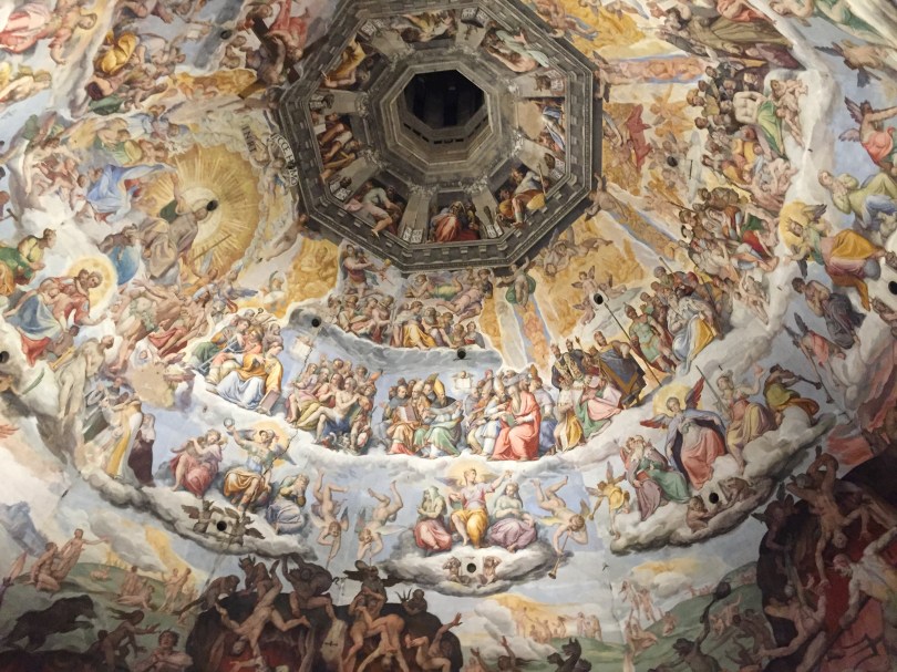 Knowing we didn’t have much time to spend in the city, we decided on just visiting the Duomo, the bell tower (the Campanile), and Duomo museum with an all access pass. We found the spot on the map, and headed for the Dome because you can see it from most parts of the city. We turned a corner, and heard some beautiful music and the most magnificent view of the building. We were in awe!